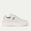 Crafted from premium white calfskin, these sneakers feature the iconic metallic dagger on both sides, a distinctive brand symbol. The sporty silhouette with platform chunky sole blends boldness and functionality, perfect for a sophisticated and confident style.